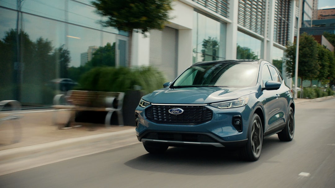 The Ford Escape features a bold, athletic exterior design that commands attention. Its sculpted lines and distinctive grille create a modern profile that stands out on the road.